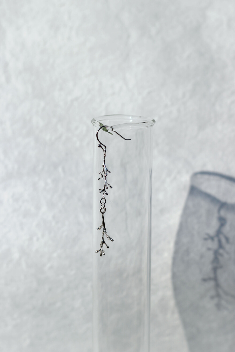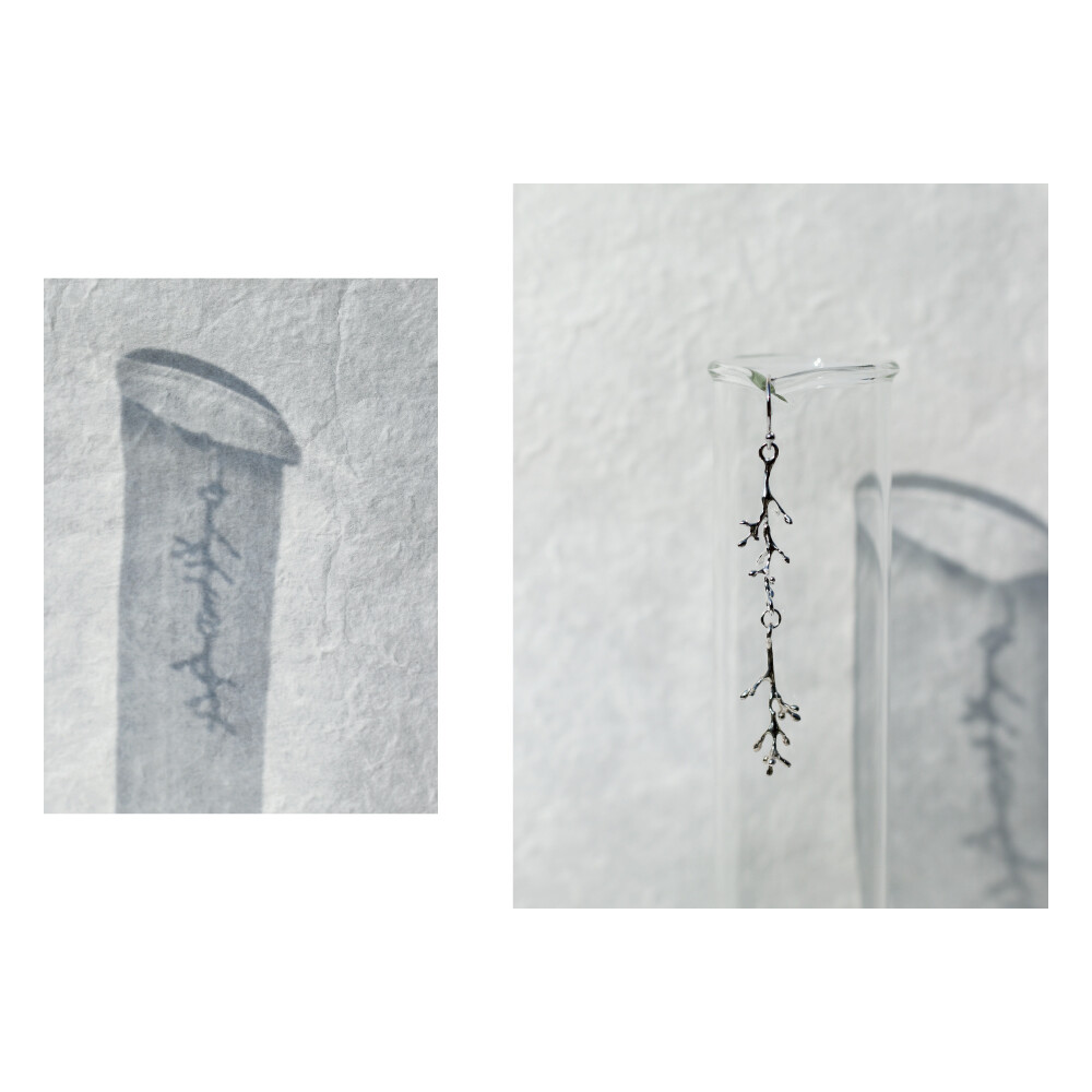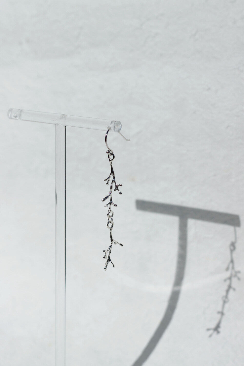 마른 나뭇가지 두개가 나란히 연결된 드롭 형태의 싱글 귀걸이입니다.