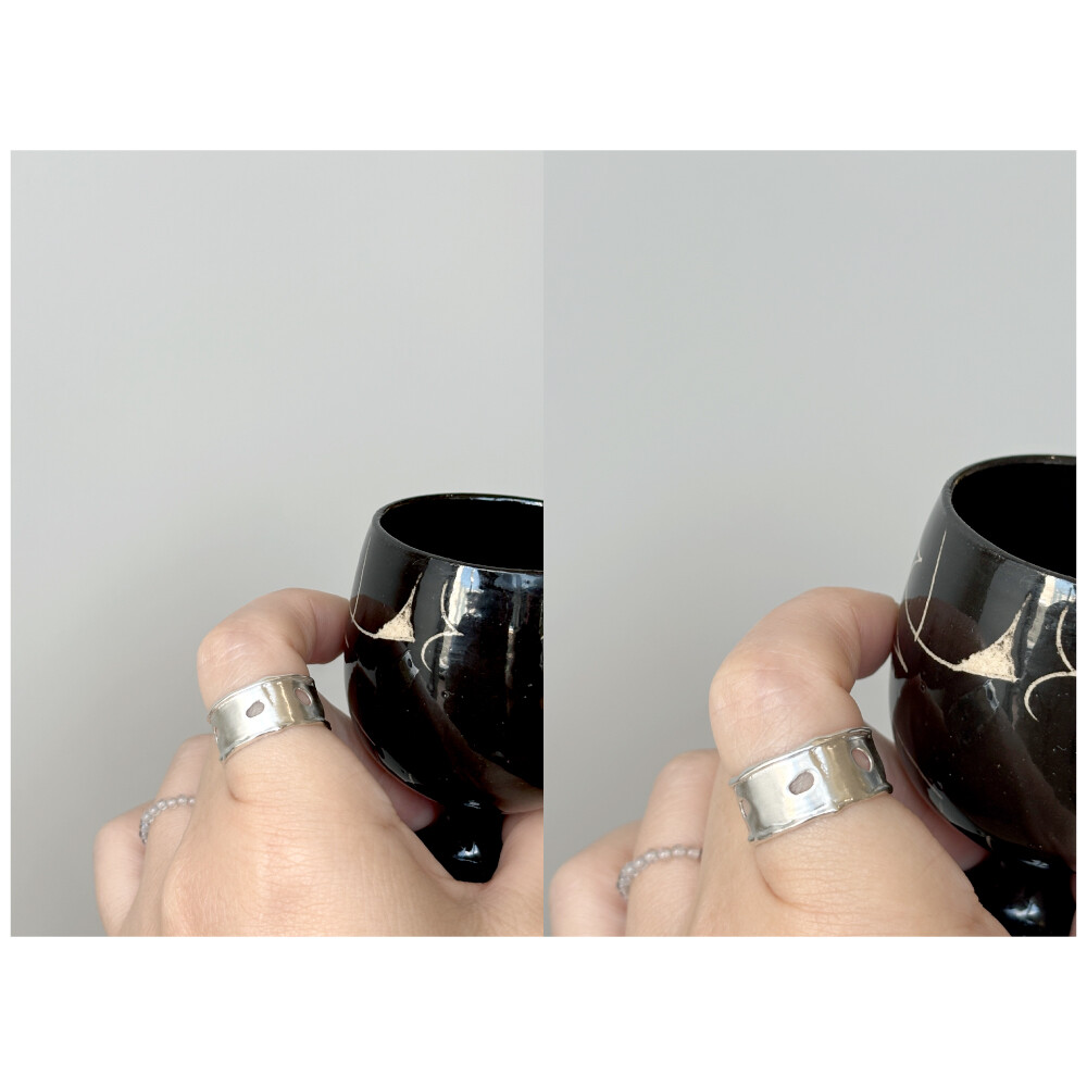 실버는 무른 특성이 있으므로 원하시는 손가락에 맞춰 약간의 힘을 주어 조절해 착용해 주세요.