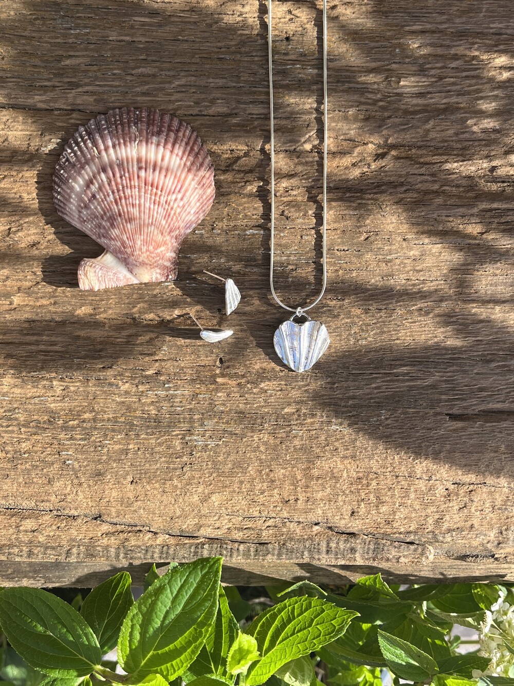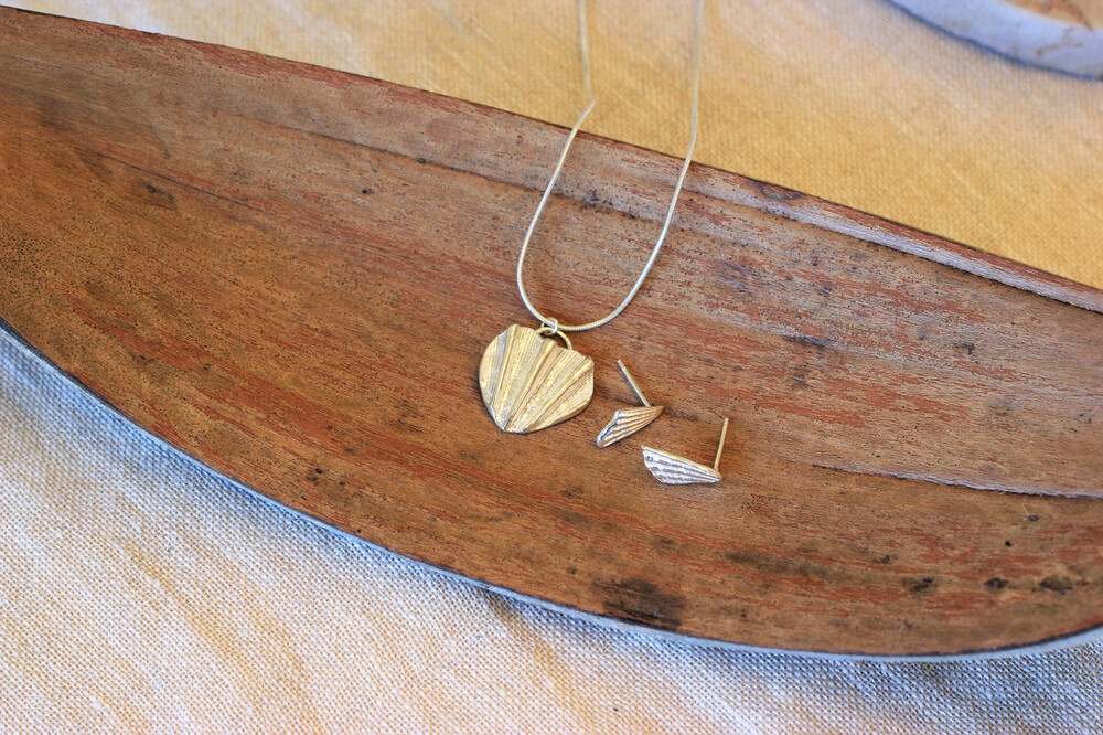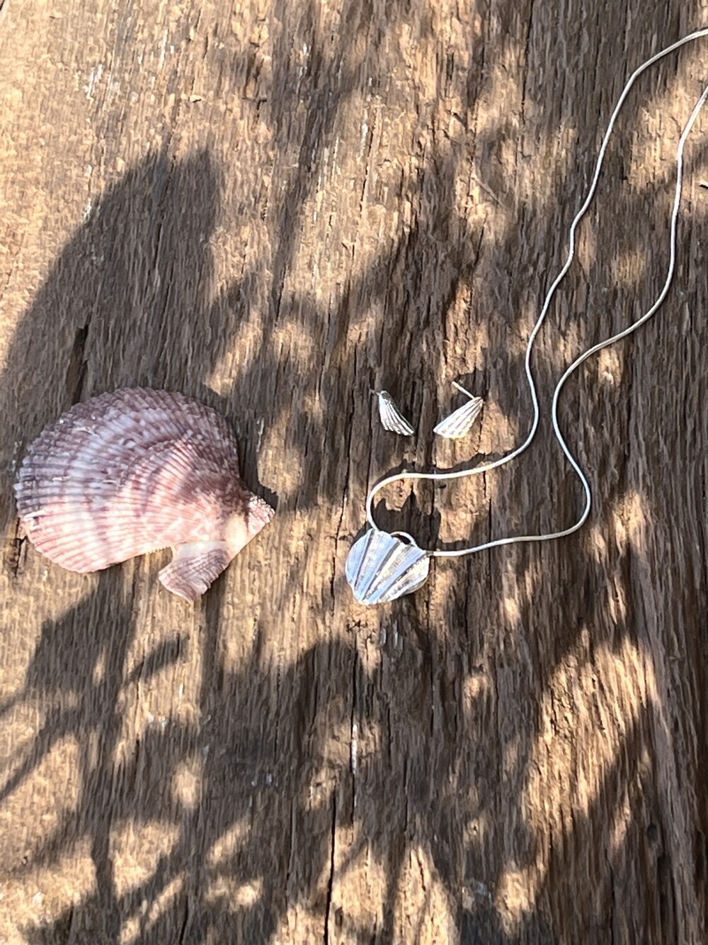바다의 조개껍질을 작게 조각내어 귀걸이로 만들었습니다.